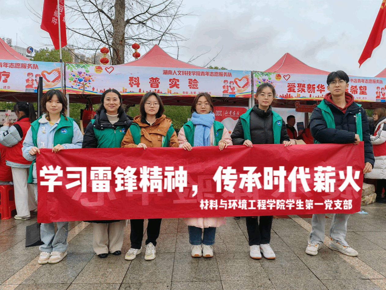 英雄故事历久弥新,雷锋精神不可磨灭,材料与环境工程学院学生第一党支部始终坚持做雷锋精神的传承者和实践者,结合专业特色与湖南省生态环境科普基地环境工程科普展示体验中心共同孵化出“科普实验”、“移动课堂”、“开放日”、“知识竞赛”等公益项目和活动。未来支部将在学院党总支的带领下,继续践行雷锋精神,以“热辣滚烫”初心扎实开展社会实践,让雷锋精神在新时代充盈青春温度!