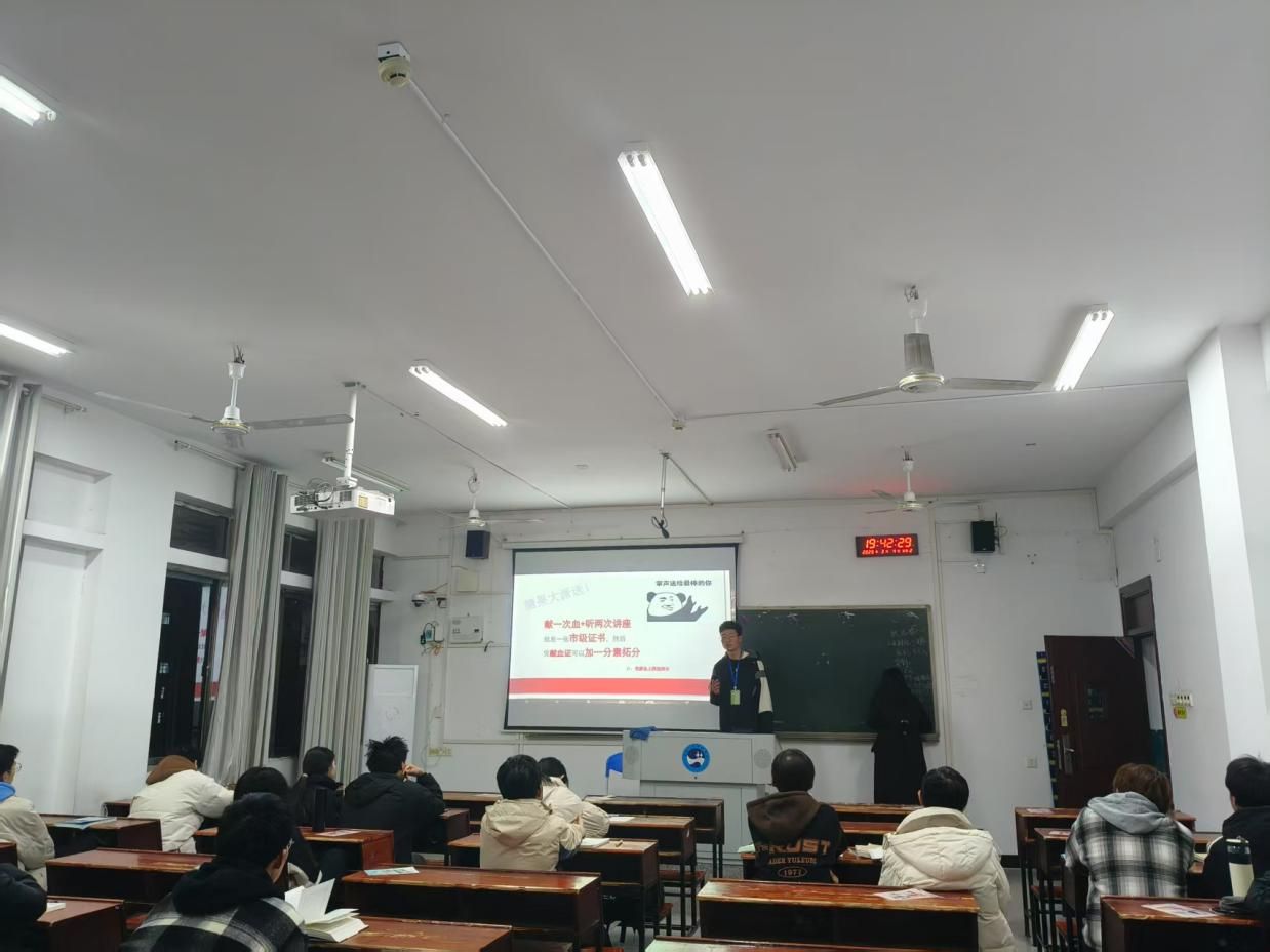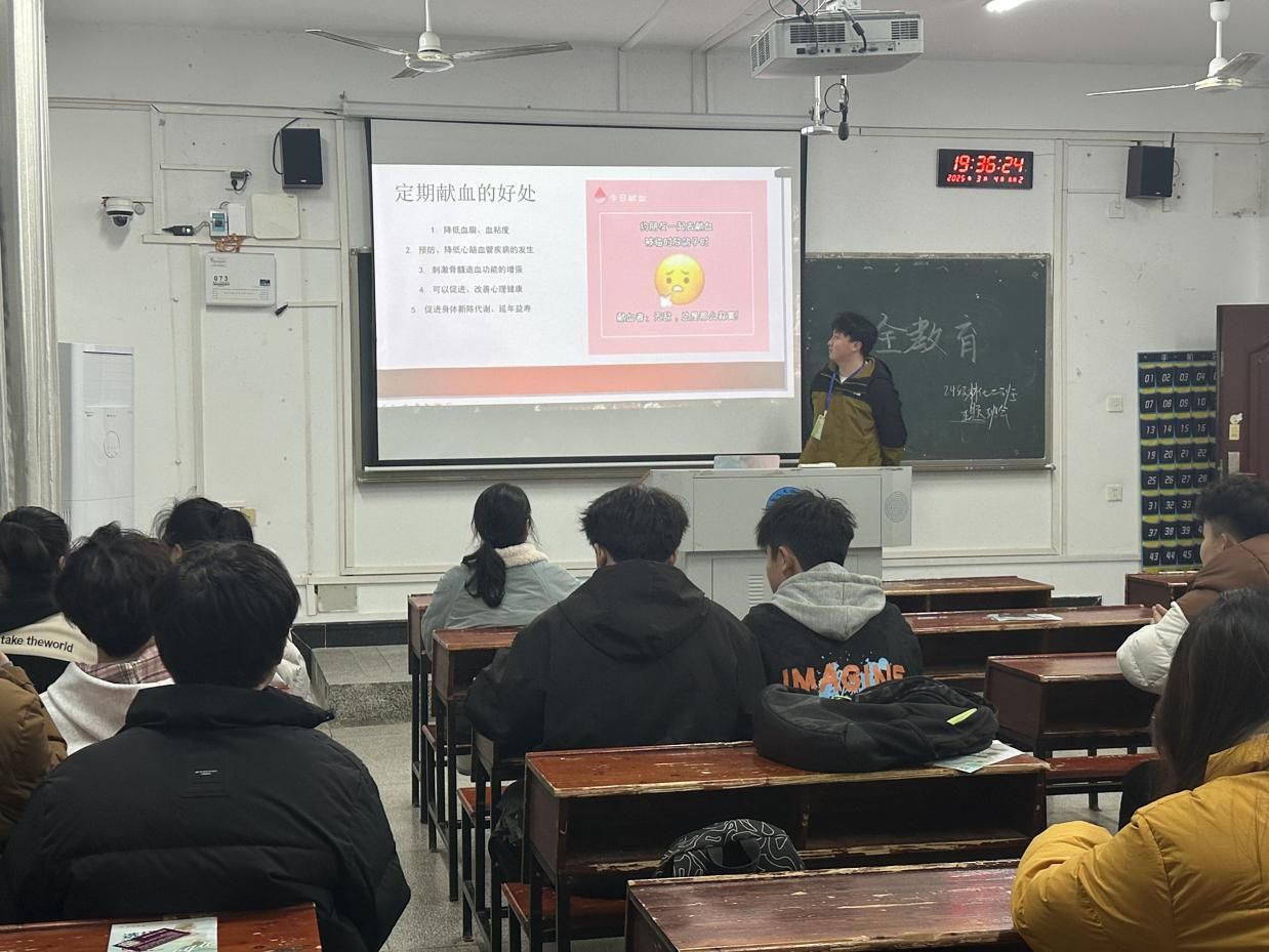 在学院各个班级的宣讲现场,志愿者们围绕献血的基本条件、流程、相关政策和注意事项等方面向同学们进行了解读,播放科普视频。期间,同学们认真记录要点,积极提问,志愿者们结合自身经历与同学们互动,让每一位同学都对献血知识有了科学客观的了解。