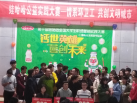 如果,把一座城市的生活比作一首动听的交响曲,那么,环卫工人就是这首交响曲中最微小的一个音符。“唰—唰—唰—”每天清晨,当人们还未完全醒来,环卫工人已经用着他们的扫帚,开始在地面上弹奏出动人的音符。现在天气渐冷,环卫工人们每天早出晚归,在寒风中瑟瑟发抖,作为社会有责任感的大学生志愿者,想要力所能及的为他们做些事情。经过为期一个多月的报名、初赛、复赛等一系列活动之后,娃哈哈公益营销大赛也终于接近尾声了,材料与环境工程学院团总支特此举行娃哈哈公益营销大赛决赛暨闭幕式晚会并为整个活动进行最后一次收尾并对决赛进行评选和颁奖仪式。