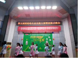 晚上19:30闭幕式晚会正式开始,主持人致开幕词并播放ppt后,由刘桂英副书记上台为晚会开场致辞,表达对娃哈哈活动大家付出的辛勤的认可与对晚会的期待。紧接着,材料与环境工程学院拉拉队带来暖场舞《拉拉操》,第1—2组派代表选手进行ppt现场展示解说。接着在化本班游景明、材化一班周意、环境工程贺怡杰带来的歌曲串烧后第3—4组派代表选手进行ppt现场展示解说。在高材二班王嘉仪、王钰婷演唱的歌曲《原来你也在这里》后接着便由第5—6组代表选手进行ppt现场展示解说。由材化二班熊含晗,聂珊枫,李书婷带来书法,舞蹈《冰菊物语》,随后第7—8组派代表选手进行ppt现场展示解说,由高材一班全体成员带来合唱《追梦赤子心》,之后第9—10组派代表选手进行ppt现场展示解说。所有选手解说完毕后由材料与环境工程学院团总支青工部展示PPT并为同学们讲解娃哈哈公益实践大赛期间团总支成员们的辛苦工作。晚会的最后在各位领导为获奖队伍颁奖的激动时刻中拉下了帷幕,第五届娃哈哈公益实践大赛活动圆满结束。