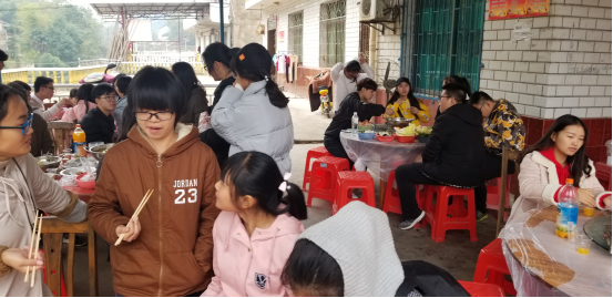 此次活动由团总支素拓部主持操办,在26号早上7:30各组三个负责买菜的同学在食堂门口集合前往民营市场购买食材,各组买好后,按小组搭车前往仙女峰,其余的成员8:00集体在校门口下集合按组搭车出发到仙女峰。到达活动地点后,团副组织讲话强调纪律问题以及进行农家乐过程中所要注意的事项。之后便是紧锣密鼓的准备工作,全体人员各司其职,洗菜的,刷碗的,切菜的分工明确。就算天气寒冷,却也阻挡不了同学们的热情。