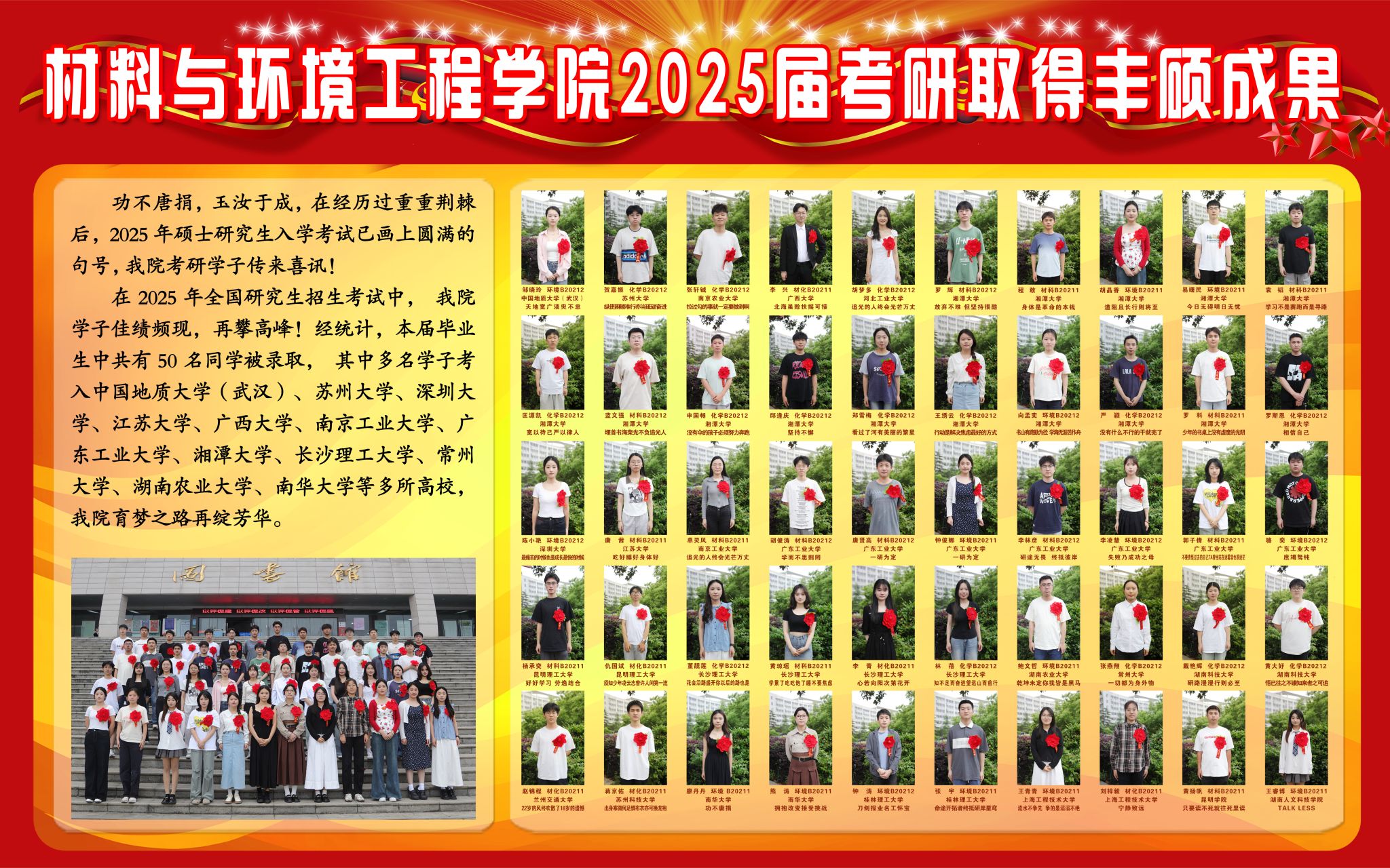 “研”途逐梦,终绽芳华。此次考研的优异成绩,不仅是材环学子个人努力的成果,更是学院人才培养模式创新与教育教学质量提升的有力证明。未来,材料与环境工程学院将以此为契机,继续深化教育教学改革,优化人才培养方案,营造更加浓厚的学习氛围,助力更多学子实现理想,书写属于自己的精彩篇章!
