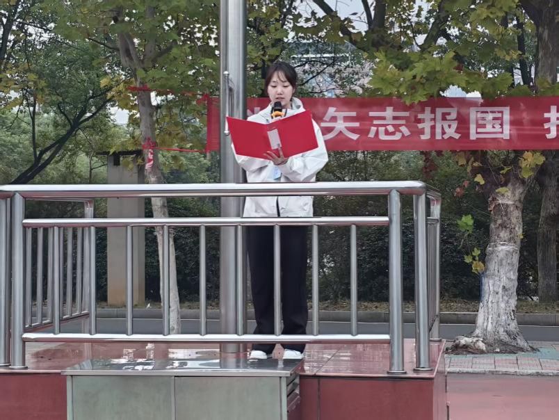 随后,2025级化学专业学生郑斯文进行了题为“以青春铸剑,以科技报国”国旗下的演讲。她回顾了新中国成立以来的重大科技突破与成就,说明科技是强国基石、教育是发展根基,号召全体同学心怀“国之大者”,做勤奋求知的探索者、脚踏实地的奋斗者,将专业所学与国家发展需求紧密结合,以青春之力为科技强国建设添砖加瓦。