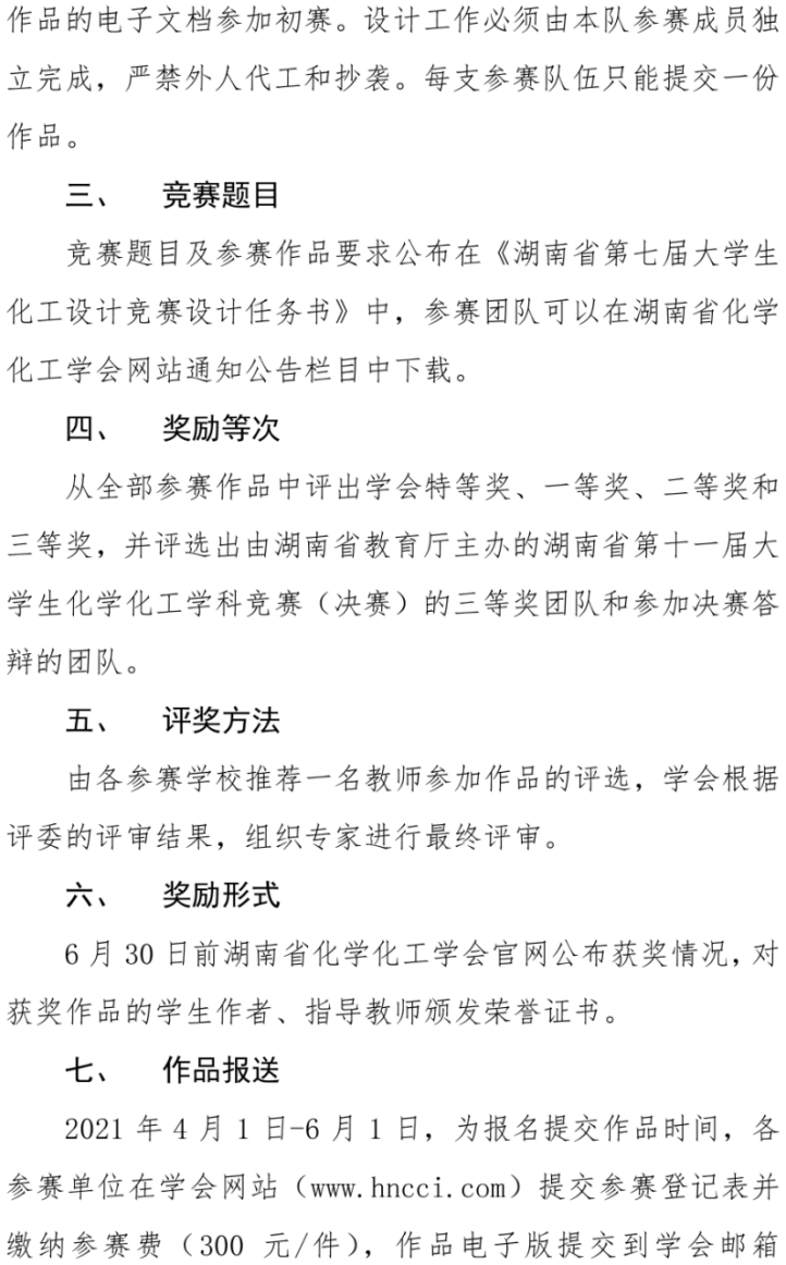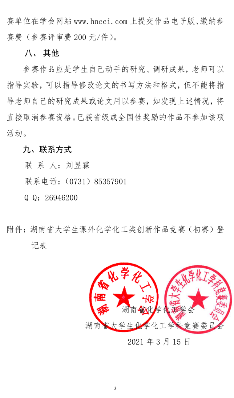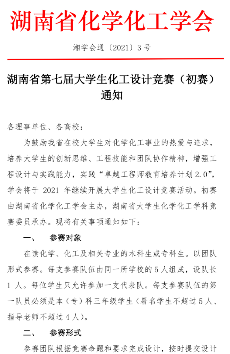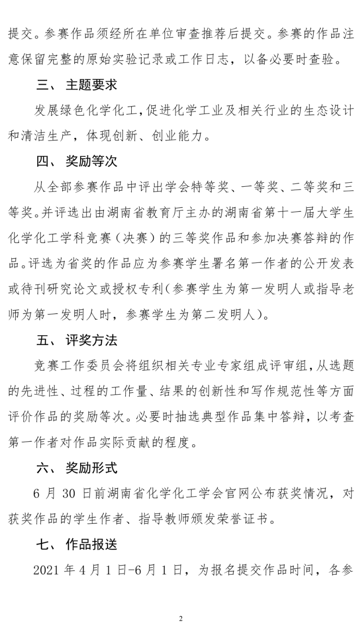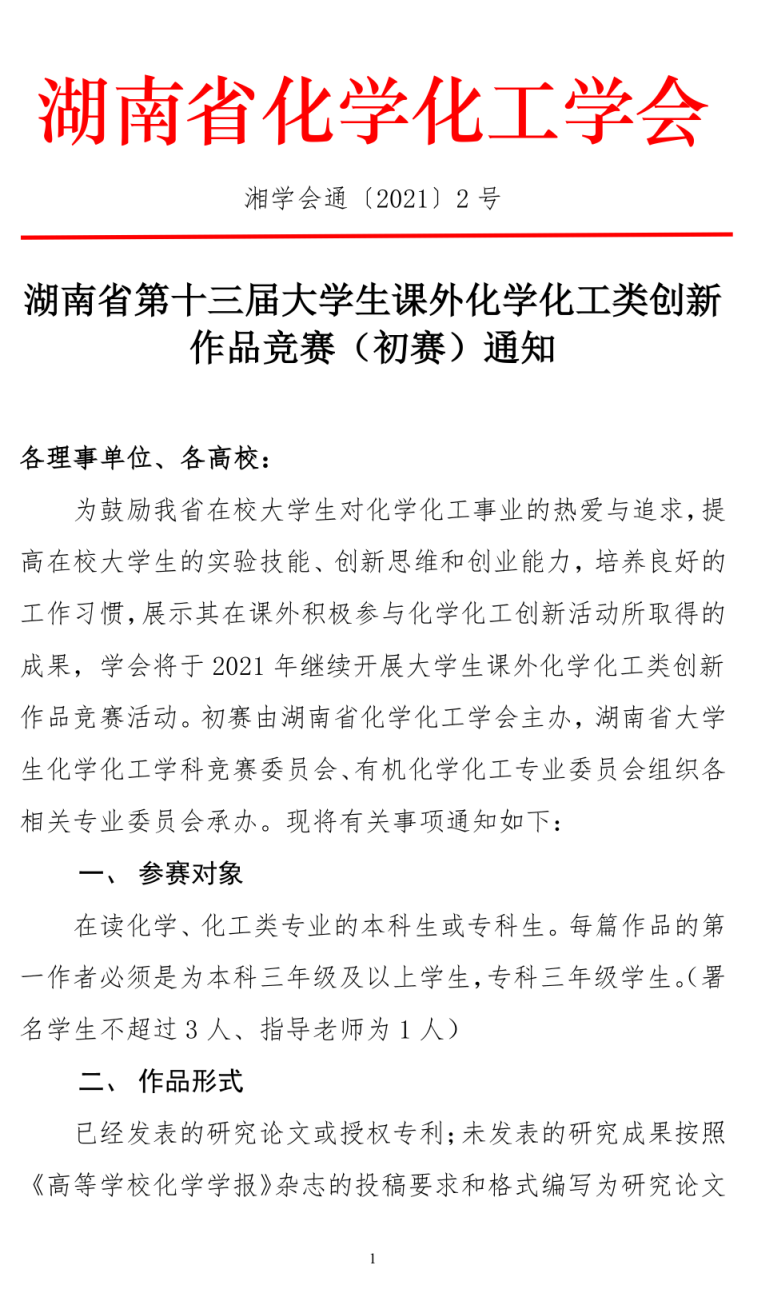 湖南省第十三届大学生课外化学化工类创新作品竞赛(初赛)通知