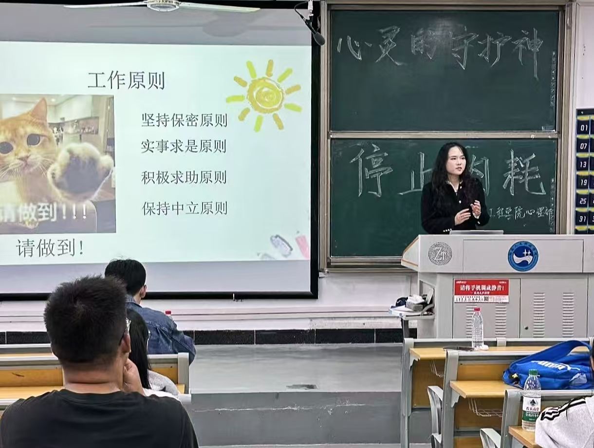 10月17日下午,材料与环境工程学院心理部组织2022、2023、2024级各班的心理委员以及心理部志愿者。在致远楼412举行了以“心灵的守护神”为主题的心理健康培训。心理咨询中心刘嘉颖老师和学院心育专干李雷震老师出席本次培训。