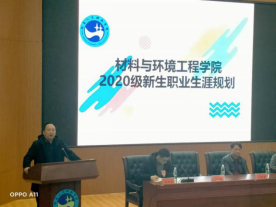 12月6日(周日)晚上19:30,材料与环境工程学院举办的2020级“职业生涯规划”课程在匠成楼报告厅召开。参与本次课程的有材环院党总支书记刘志成,20级全体新生。