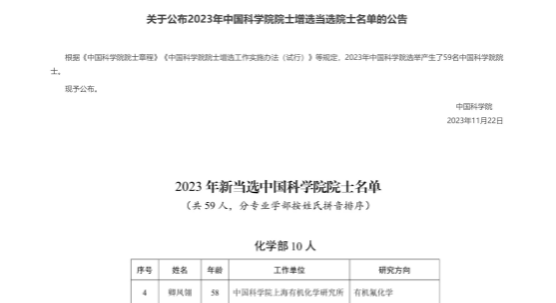 2023年11月22日,中国科学院发布《关于公布2023年中国科学院院士增选当选院士名单的公告》,校友卿凤翎研究员在2023年两院院士增选名单公布的喜讯中,我们热烈祝贺卿凤翎教授成功当选中国科学院院士!