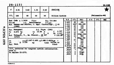 4. 从索引中查找到与晶面间距d和相对强度I/ I1值基本相同的卡片。