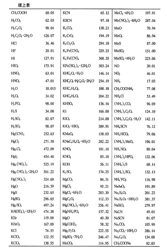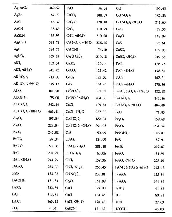 附录2 常用化合物的相对分子质量表