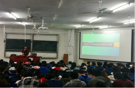 会议中,刘鑫教授对2019年湖南省化学化工实验技能与创新设计竞赛标准进行了深层次解读,他提出,创新创业大赛是国家对大学生发展的支持,是同学们走出去与中国其他高校学子比赛交流的平台,是同学们提高自身能力与素质的重要机会,同学们应该积极的准备,认真的参赛,抓住每一次的机会。化学化工实验技能竞赛更是对我们化学专业学生的考验,通过化学化工实验技能竞赛,能够直观的看到自己的不足,从而可以有针对性的进行改进。刘教授对化学化工实验技能与创新设计竞赛的解读深刻不失生动,使在座的学生们对竞赛有了更深的理解,也更加重视此次化学化工实验技能与创新设计竞赛。