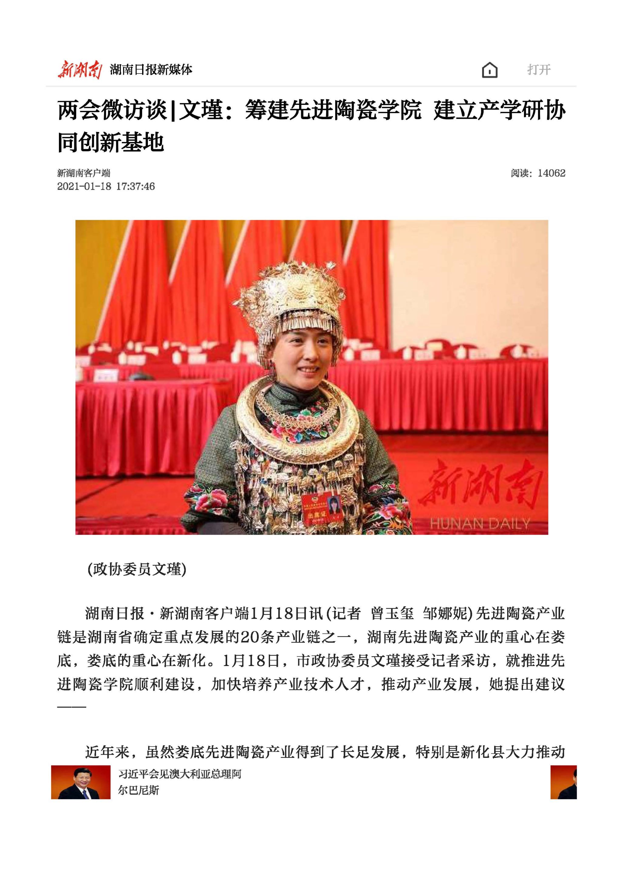 两会微访谈|文瑾:筹建先进陶瓷学院 建立产学研协同创新基地