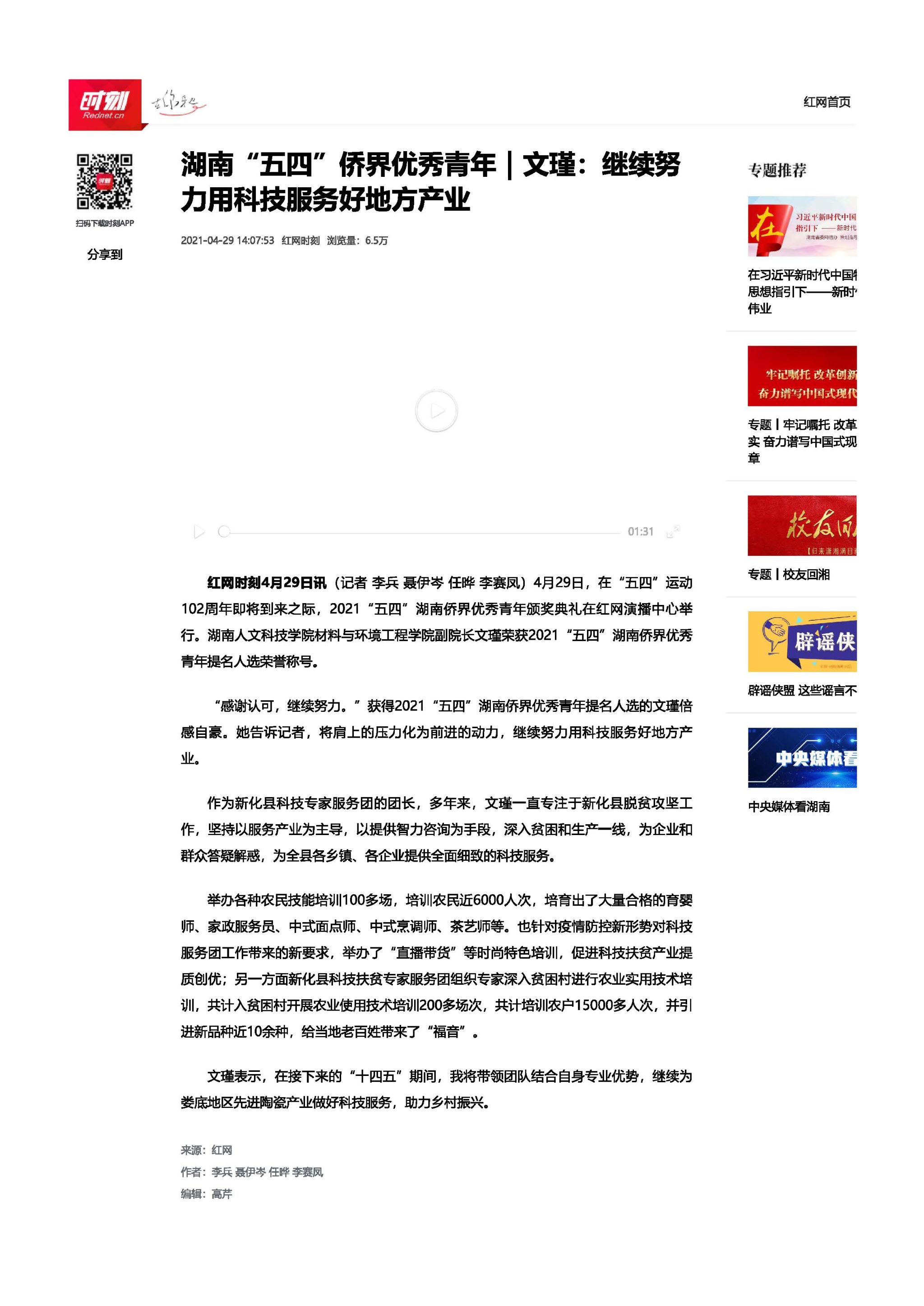 湖南“五四”侨界优秀青年|文瑾:继续努力用科技服务好地方产业