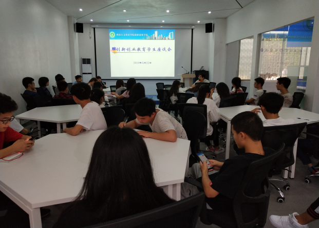 为及时了解大学生在创新创业教育过程中的学习情况,进一步提高创新创业课程教学质量,5月22日下午,创新创业学院在匠成楼路演厅召开创新创业教育学生座谈会。会议由教学管理服务中心李宁老师主持,教务秘书谭芳柳老师及全校2017级各本科专业学生代表参加座谈。