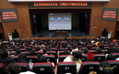 12月9日19点半,在学校逸夫楼音乐厅,2004级优秀校友肖四清受邀作客创新创业大讲堂,分享他的创业故事。学校党委副书记刘铁铭、副校长石潇纯出席,校友办、创新创业学院负责人以及学校师生代表700余人参加了分享会。本次分享会由校友办、创新创业学院联合主办,石潇纯副校长主持。