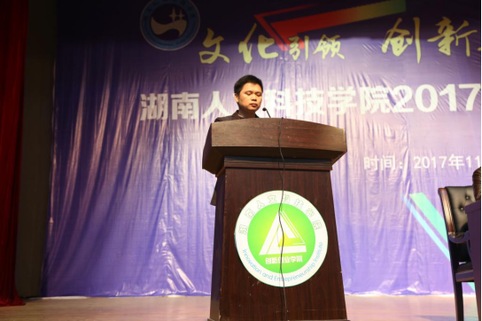 开幕式上,创新创业学院院长彭晓华介绍了文化节的筹备情况以及活动内容,体育学院文江代表第二期创新创业精英班学生发言,法学院谷小科代表教师发言。