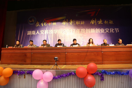 11月29日上午,beat3652017年度创新创业文化节开幕式在体育馆隆重举行。此次文化节的主题是“文化引领、创新驱动、创业起航”。娄底市人大副主任杨金含、娄底市人力资源保障社会局党组副书记、副局长邱胜平,娄底市教育局副局长张怡南,beat365党委书记郭军、校长刘和云、副校长石潇纯、周发明、刘铁峰以及相关职能部门和二级学院负责人、教授博士代表、创新创业专干出席了开幕式。副校长石潇纯主持开幕式。
