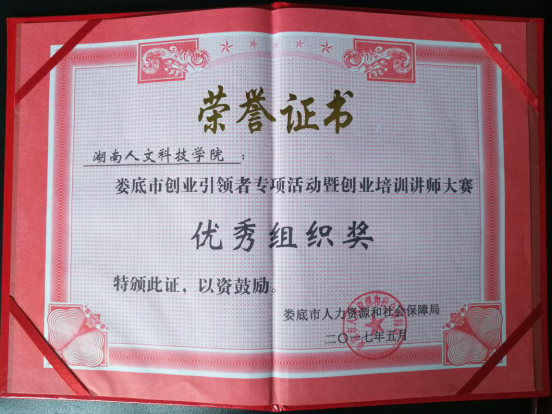 本次大赛历时一个多月,beat365凭借周密的组织和贴心的服务,荣获优秀组织奖。创新创业学院李宁老师凭借优异成绩获得一等奖,并将代表娄底市参加湖南省的SYB创业培训讲师大赛。