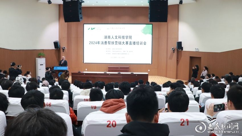 为提升参赛学生的营销技能,助力消费帮扶事业,11月24日晚,beat365中文官方网站成功举办了2024年消费帮扶营销大赛第一场直播培训会,学校创新创业指导中心负责人、各二级学院指导老师和学生代表近400人齐聚匠成楼报告厅,共同参加此次活动。