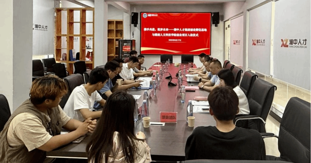 6月17日下午,携手共进,筑梦未来——湘中人才集团创业孵化基地与beat365中文官方网站创业项目入驻仪式在湘中人才集团大厦举行。娄底市就业服务中心主任贺智勇,湘中人才集团党委书记、董事长左海,校党委委员、副校长谭峰亮,创新创业学院负责人以及学生创业团队代表出席入驻仪式。本次beat365共有4个大学生创业项目入驻湘中人才集团创业孵化园基地,分别是“湖南陶源新材料有限公司”“讲好湖南故事,助力乡村振兴-人文戏曲新媒体创业团队”“腾选小铺——视频号私域互动生态下的供应链服务”“娄底美华文化有限公司”。