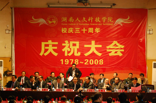 市委书记林武先生在会上发表了热情洋溢的讲话,对校庆表示热烈祝贺,对学校30年来取得的成果给予了充分肯定,他希望学校继续解放思想,抢抓机遇,突出特色,人才强校,提高质量,创新体制,取得新的辉煌。他表示市里将继续为学校提供良好的发展环境,提供一定的政策、资金支持,竭尽全力办好娄底唯一的本科大学。