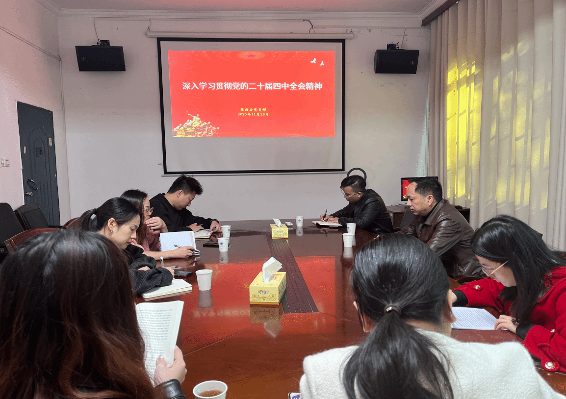 11月28日,党政办党支部在明德楼218会议室召开深入学习贯彻党的二十届四中全会精神专题学习会议,并顺利完成支部换届选举工作。会议由党政办副主任彭正华主持,支部全体党员参加。