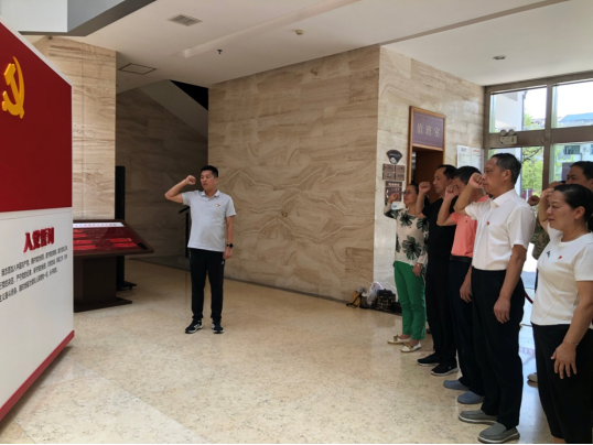 7月11日上午,前往井冈山黄洋界哨口工事遗址参观学习。途中,大家观看了红色教育影片《黄洋界保卫战》,支部书记李玲军带领大家登顶黄洋界、重走挑粮小道、察看炮台工事、哨所营房,瞻仰黄洋界纪念碑,通过在原址上体验学习,边听边看边思,共上特殊党课;下午,在红军标语博物馆,党员同志们面向党旗,重温入党誓词,坚定初心使命。