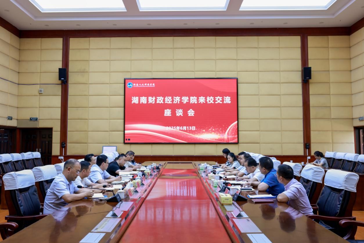 6月13日下午,湖南财政经济学院党委书记易棉阳一行来校交流本科教育教学审核评估工作。座谈会在学校图书馆第一会议室举行,湖南财政经济学院党委委员、副校长潘爱民,我校党委副书记、校长盛明科,党委副书记朱强出席会议。