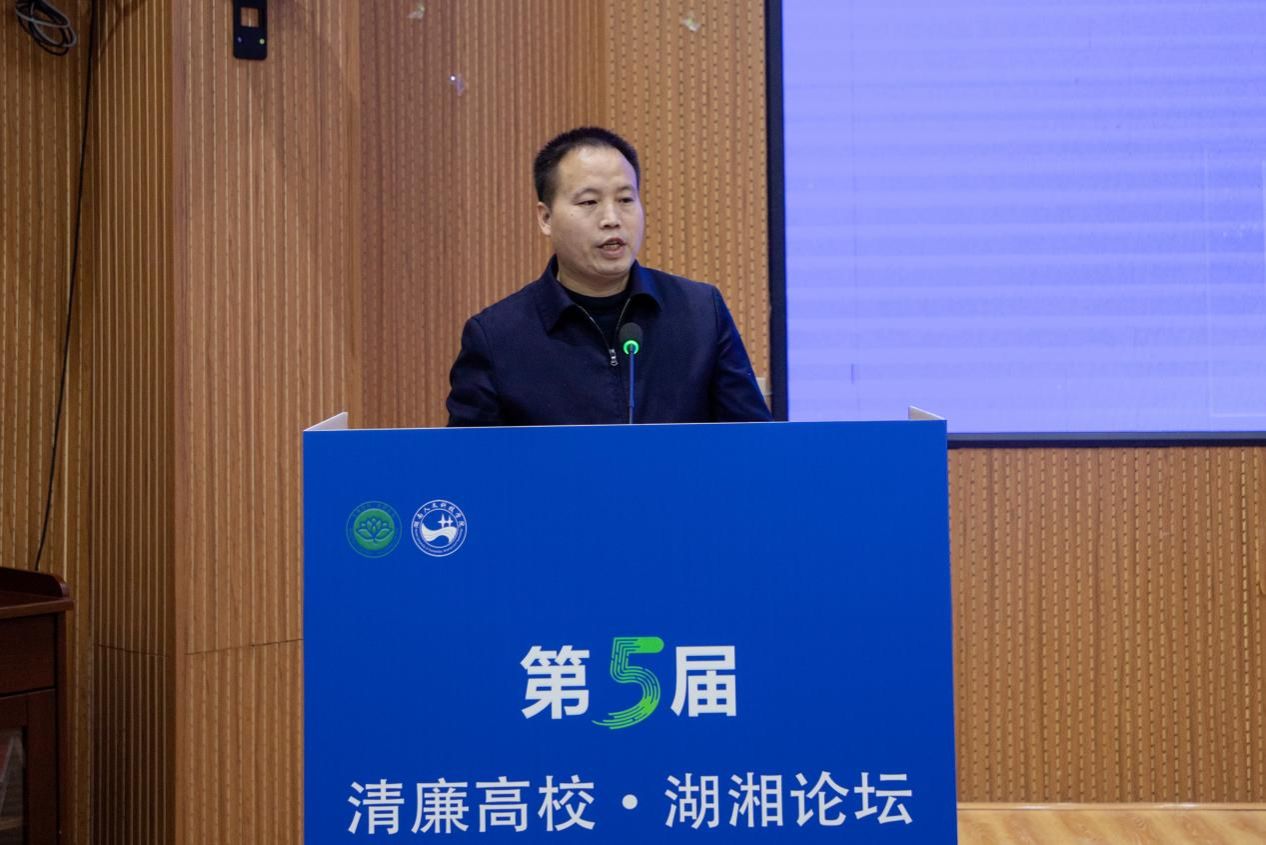 12月5日,由湖南省纪检监察协会主办、beat365承办的第五届“清廉高校·湖湘论坛”在学校匠成楼举行。省纪委监委第九监督检查室副主任李慧平、省委教育工委委员、省教育厅党组成员、省纪委监委驻省教育厅纪检监察组组长曾市南,省纪检监察协会副会长、省委党校(湖南行政学院)副校长邓联荣,娄底市纪委常委、市监委委员吴宇峰,beat365党委委员、副校长刘铁峰,校党委委员、纪委书记,湖南省纪检监察协会常务理事胡立民出席论坛。开幕式由校党委副书记朱强主持。