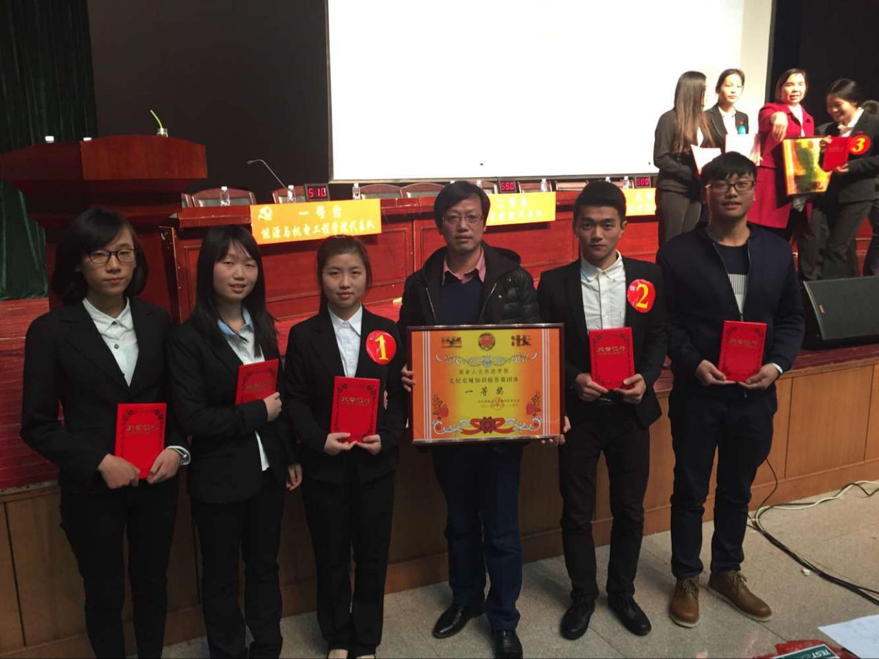 本次比赛初赛由各学院自行组织,组成学生党员代表队。经过激烈的复赛后全校共有六支学院代表队脱颖而出,顺利进入到决赛。决赛通过三个环节决出一二三名。比赛过程中六支学院代表队都充分展示出各自的特点和实力,现场赛况格外激烈。我院代表队更是沉着应对、积极抢答,即便是在落后其他队伍的时候也能保持冷静,队员之间相互鼓励,协调配合,最终干炒对手。经过三轮的激励角逐,法学院代表队厚积薄发,不负众望最终以600分的优异成绩摘得本次“党纪党规知识抢答赛决赛的桂冠”。