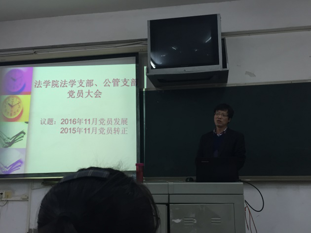 2016年11月20日晚19:00在致远楼307教室,法学院党总支召开了2016年11月党员转正大会。法学院院长朱耀斌老师、学生党支部书记郭璐老师、法学院全体在校学生党员、预备党员及各自预备期联系人参加会议。