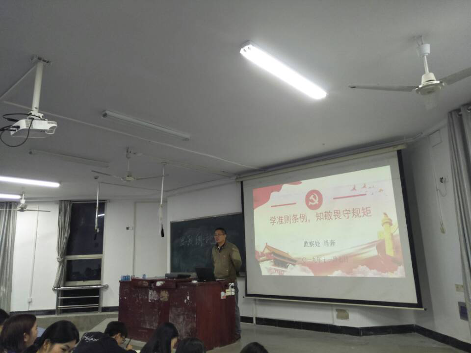 2019年11月7日晚,法学院联合数金学院、文学院和马克思学院在致远楼22举办了党员发展对象培训班第五讲,主题为关于新形势下党内政治生活的若干准则,主讲人为马克思学院张得才书记。共有54名发展对象参加本次课程。