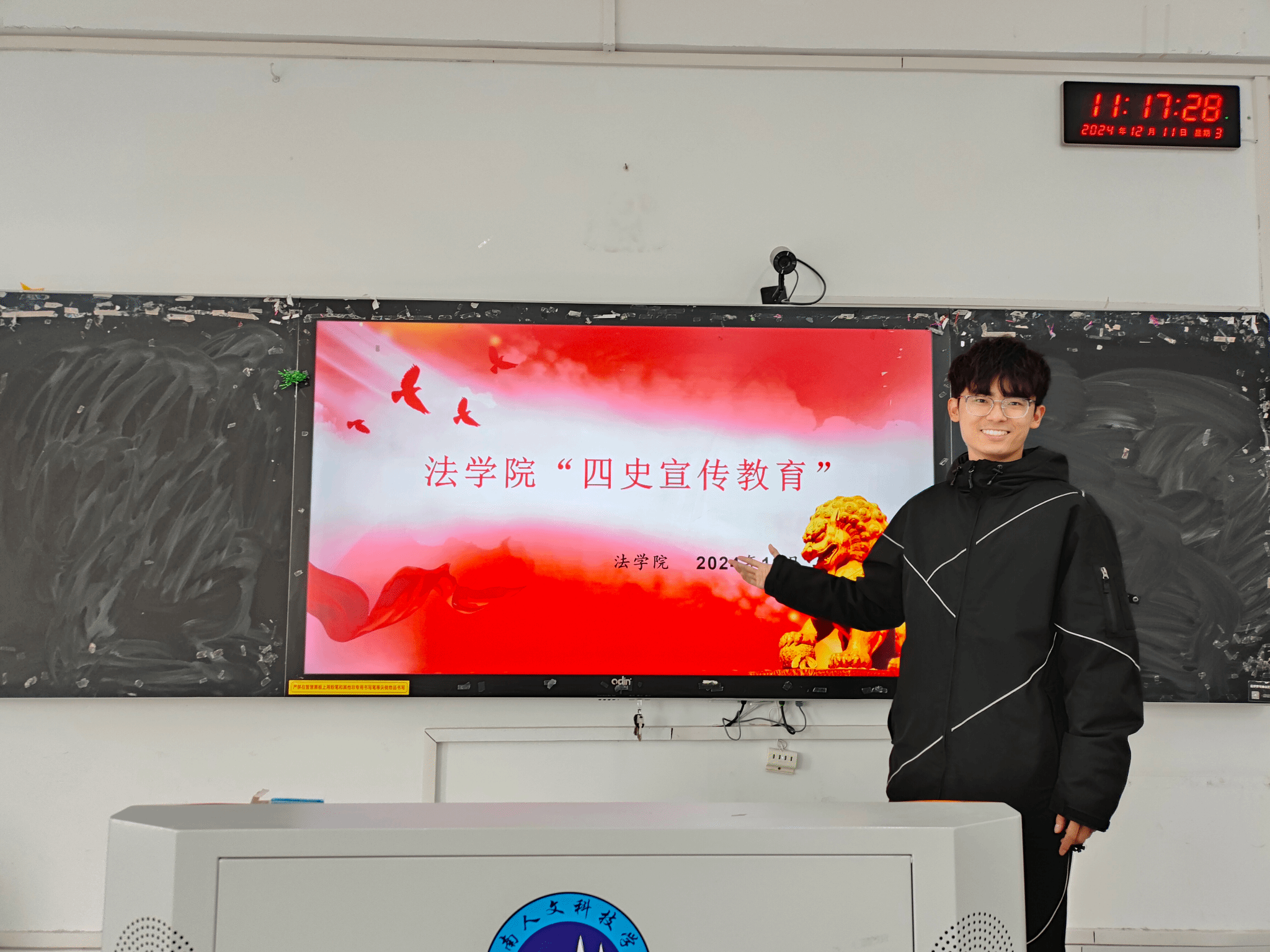 为培养学生的爱国情怀和民族凝聚力,筑牢中华民族共同体意识,12月11日,法学院在致远楼204开展“四史宣传教育”活动。