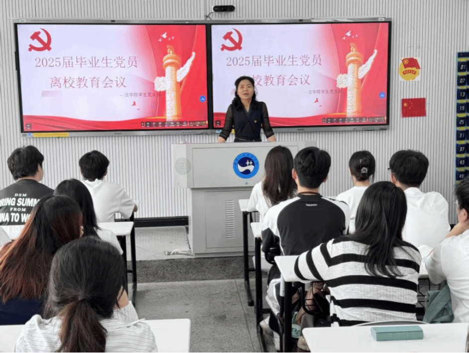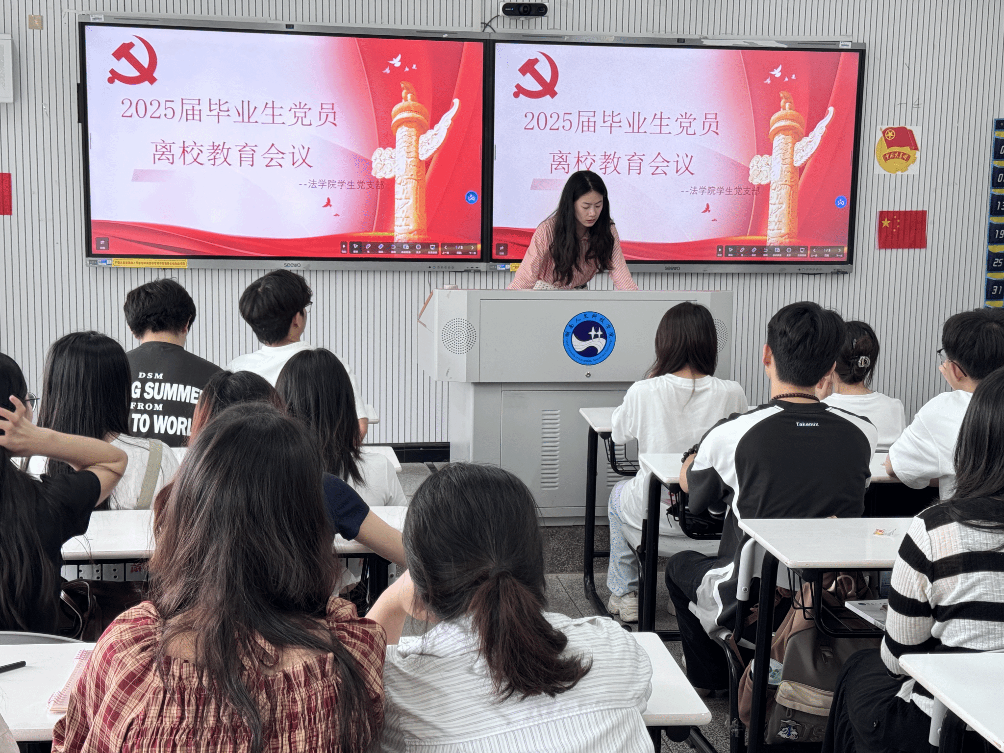 为坚定毕业生党员理想信念,指导毕业生党员正确转接组织关系,5月16日,法学院在致远楼303教室召开毕业生党员离校教育会议。