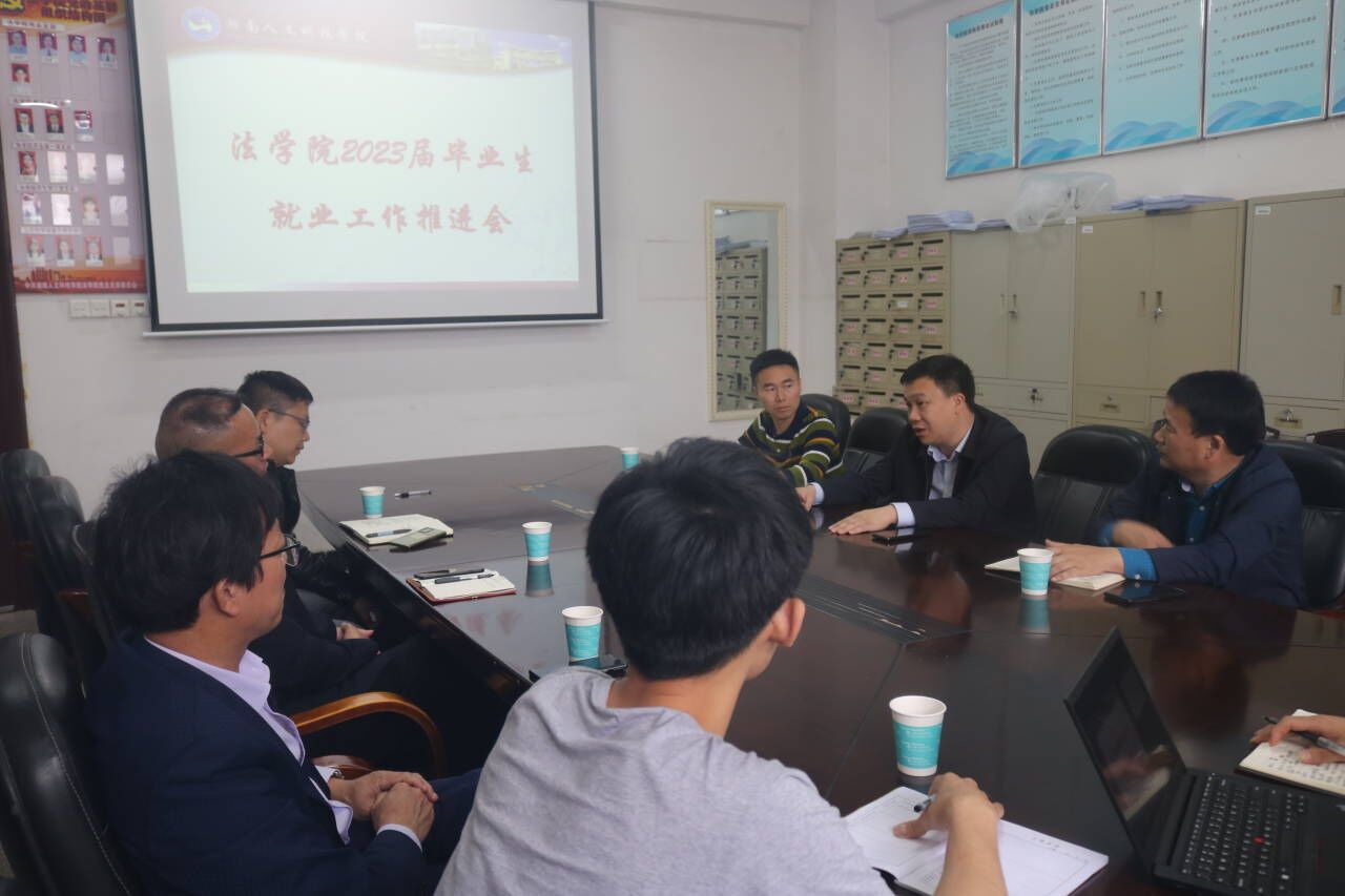5月22日下午,曹鑫校长一行人来我院于致远楼209会议室开展就业推进会议。法学院党总支书记肖兵明、院长朱耀斌、党总支副书记刘景春、办公室主任刘任旺、辅导员羊哲思参加此次会议。