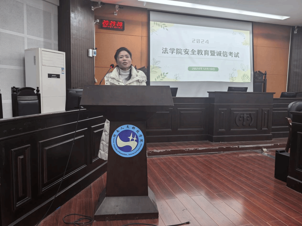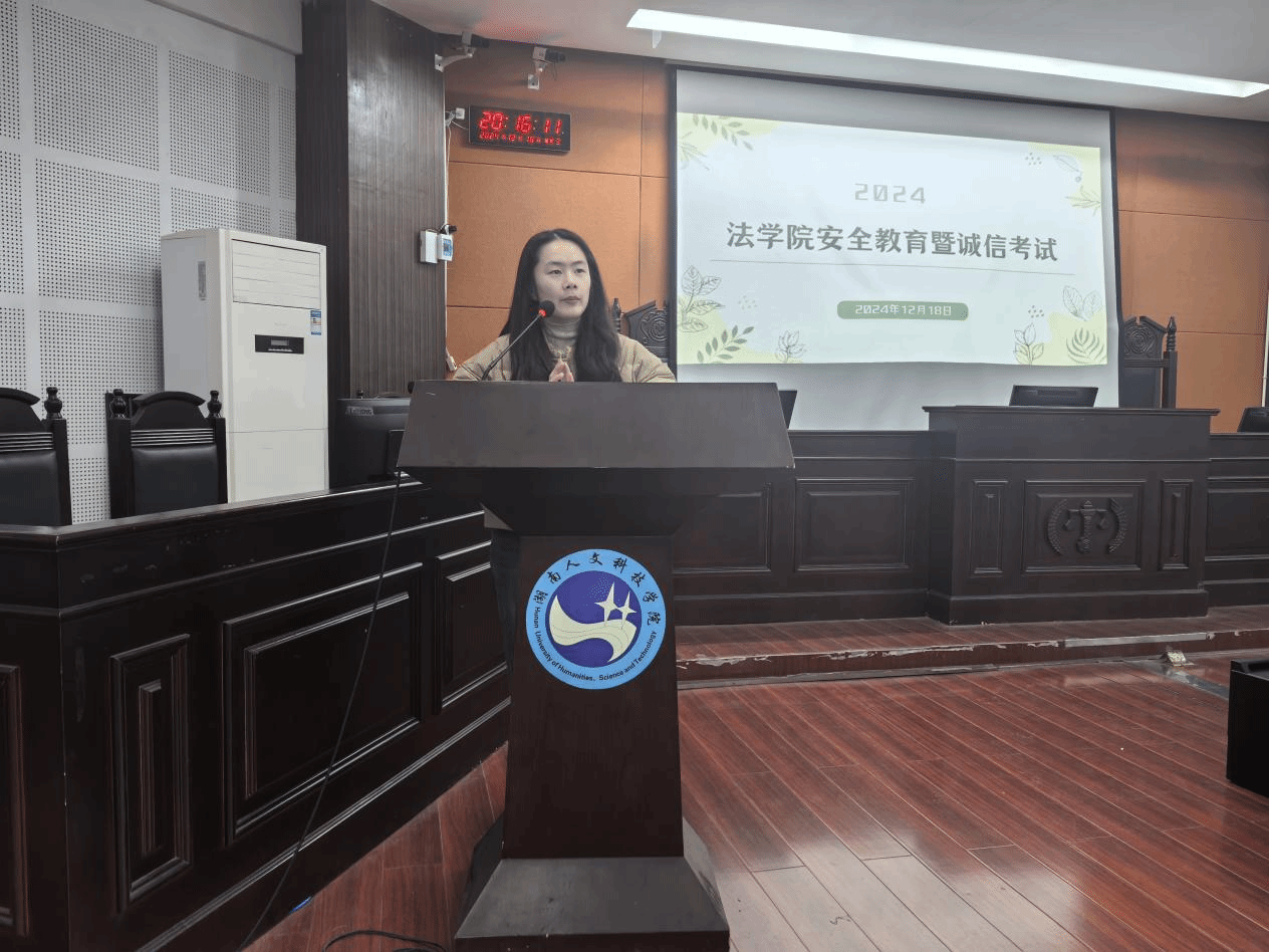 为增强学生的安全意识,确保考试的公平性,弘扬优良校风校纪,法学院于12月18日晚在致远楼202教室成功举办了“安全教育暨考风考纪教育”专题会议。党总支副书记邓南南、学工办主任陈玲、全体辅导员、团学会主席团成员以及各班级主要班委和寝室长参加了本次会议。