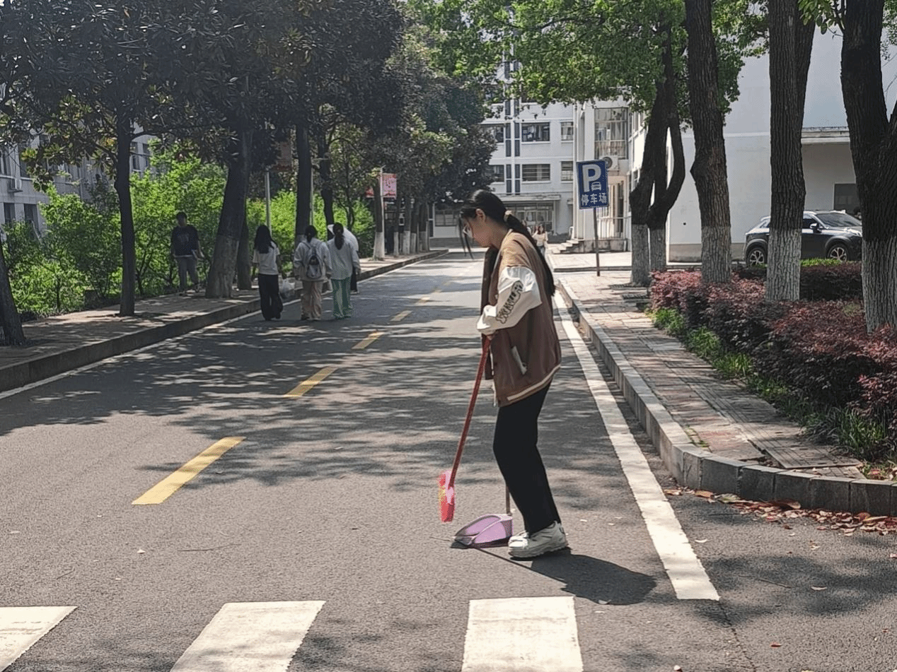 此次清扫活动,不仅使校园街道变得更加整洁,展现人文学子对环境的保护,更用实际行动彰显了奉献精神与责任担当,同时,也增强了团队的凝聚力。(供稿:陈玉婷;供图:陈玉婷;一审:闫俊;二审:邓南南;三审:肖兵明)