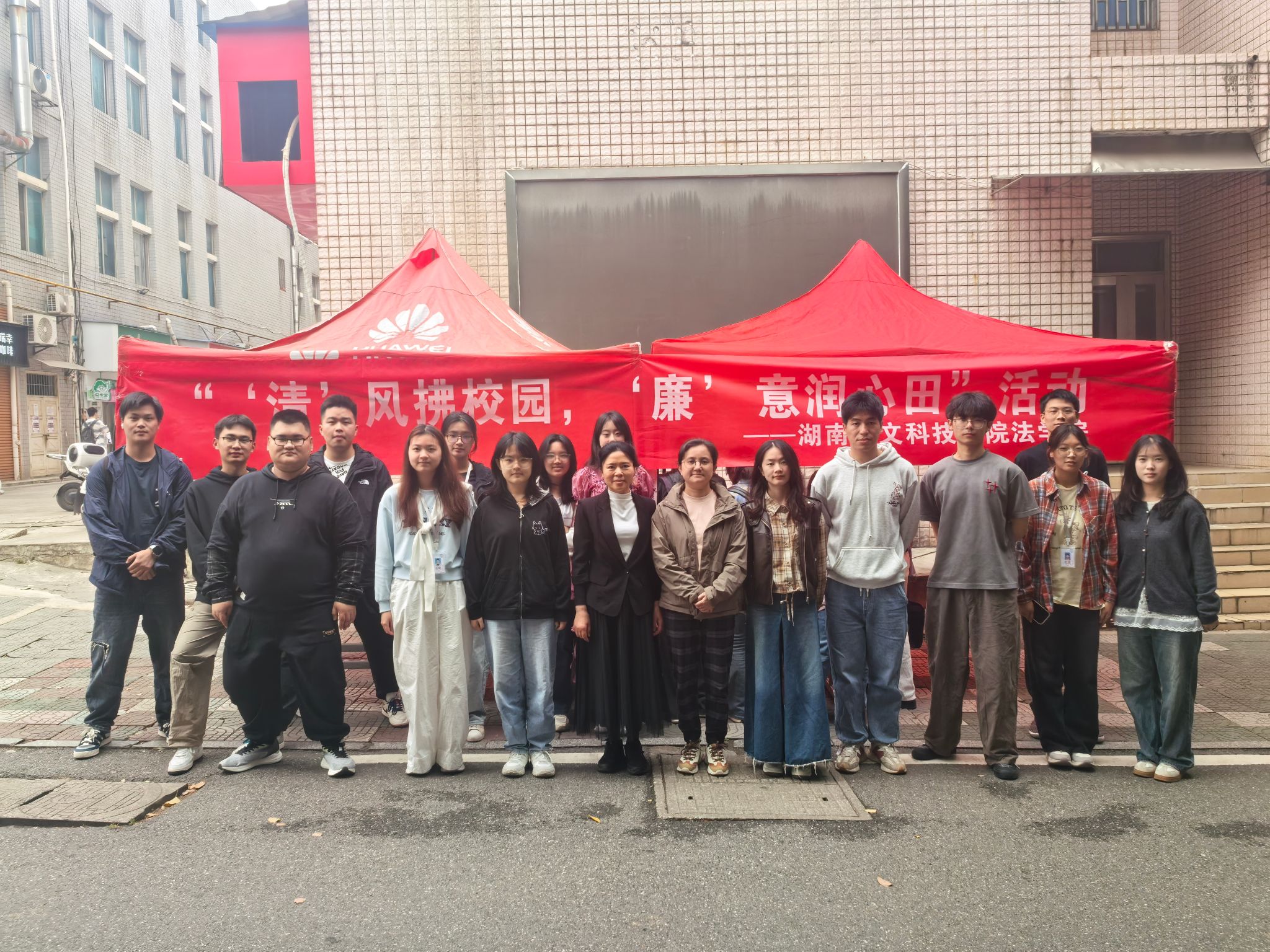 为进一步弘扬廉洁文化,营造风清气正的校园氛围,法学院于4月9日至13日精心组织开展了“‘清’风拂校园,‘廉’意润心田”特色主题活动。活动期间,党总支副书记邓南南、学工办主任陈玲以及全体辅导员亲临现场指导,为活动的顺利开展提供了坚实的保障。法学院团学会主席、综合办公室、文明建设部干部以及青年志愿者们全程参与,积极投入各项工作。