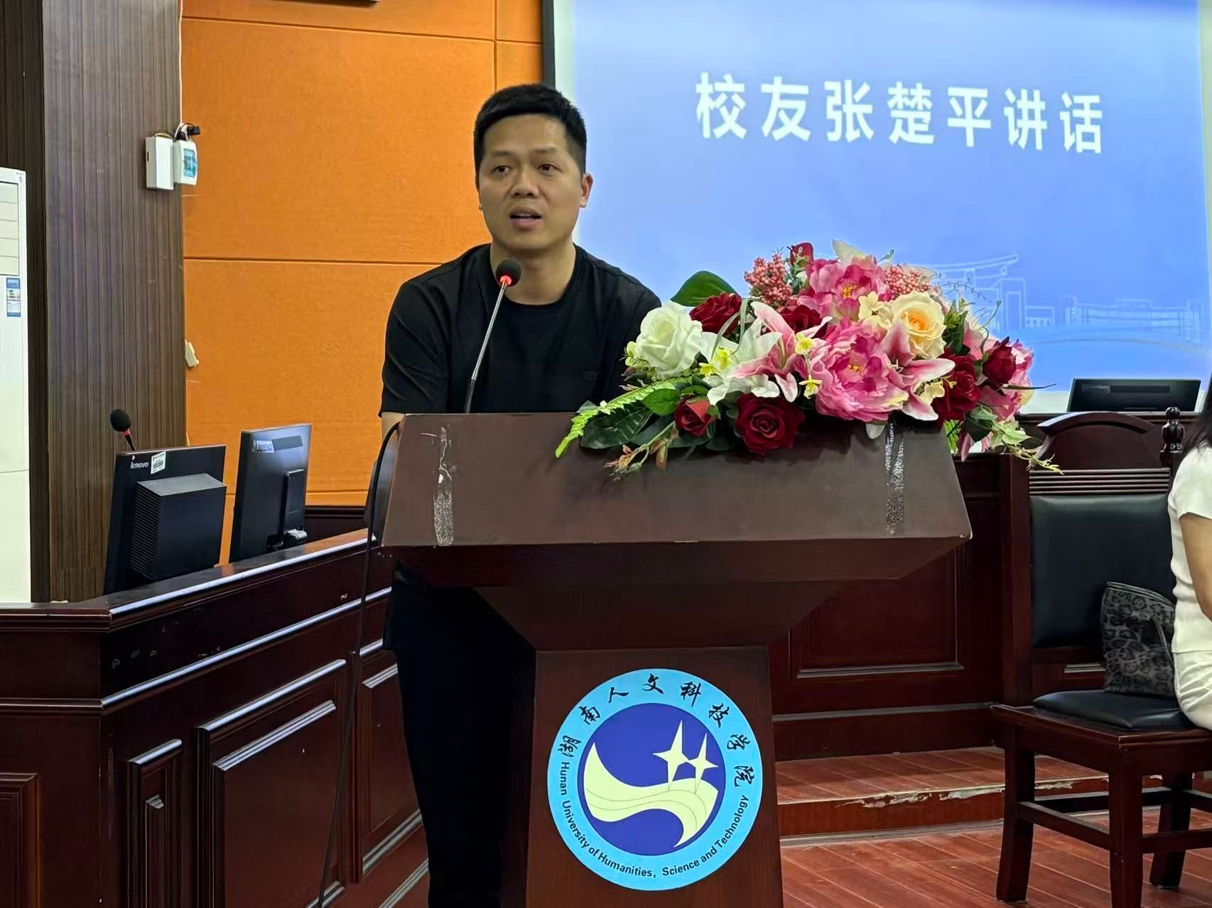 校友代表张楚平以轻松幽默的方式与新生展开交流,通过对比大学与高中生活的差异,强调法学专业学习自主自律的重要性,并围绕“你是谁”“你为了谁”“你将成为谁”三个问题引导同学们深入思考自我定位与发展方向,鼓励大家为实现个人理想与家庭期望而努力奋斗。校友宋梦杰则从考研经历出发,激励新生敢于树立远大目标,做好长远规划,始终保持奋进的姿态,不畏艰难、持续努力。