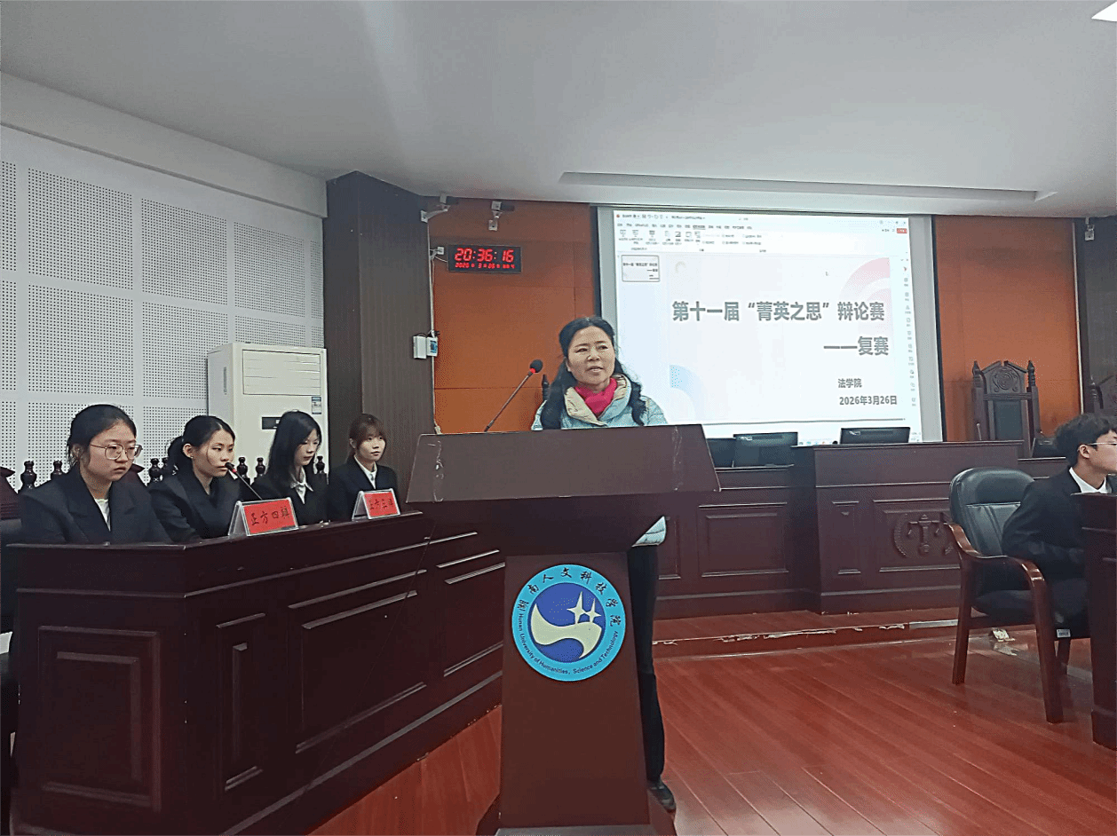 辩论有终,思辨无疆。此次“菁英之思”辩论赛复赛,不仅为法学院学子提供了展现自我、交流学习的平台,更以辩明理、以论促学,进一步激发了同学们钻研法理、探求真理的热情。期待同学们以此次比赛为契机,在法学学习的道路上持续锤炼思辨能力、涵养法治素养,以理性之思叩问法理,以青春之力传递法治声音。(供稿:肖敏柔;供图:邓雨漫;一审:陈玲;二审:邓南南;三审:肖兵明)