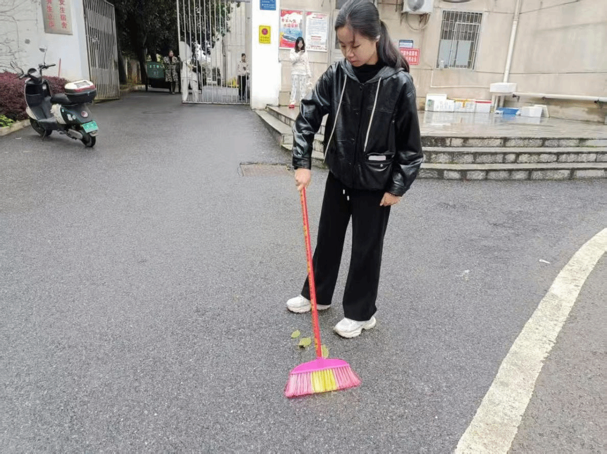 活动现场,同学们热情高涨、分工协作,手持扫帚、垃圾袋等清洁工具,对校园道路进行细致清扫,仔细捡拾落叶、纸屑及各类零散杂物,清理草坪区域,清除白色垃圾与散落废弃物,逐一排查卫生死角。