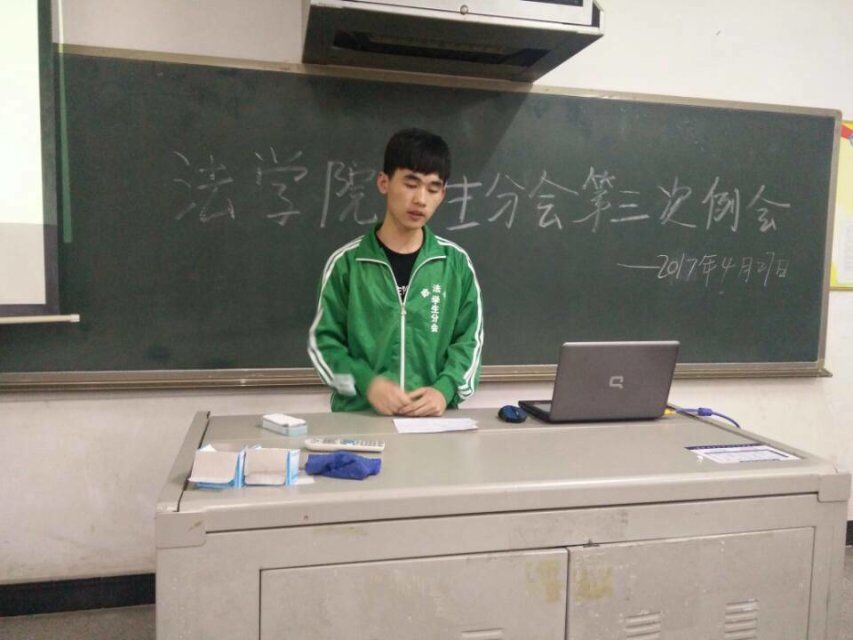 2017年4月27日下午6点20,法学院学生分会本学期第三次例会在致远楼303召开。本次例会由秘书处干事贺倩、刘冬艳主持。出席本次例会的有学生分会全体干事,各部门部长以及两位分会主席。