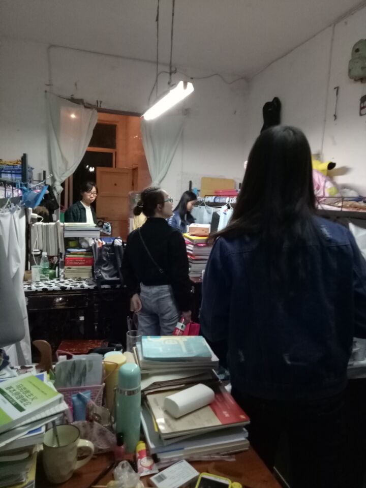 走访过程中,老师对绝大多数宿舍的卫生状况加以肯定,对不足也提出改进。热情询问同学们在宿舍生活中遇到的问题并提出解决方案,还不忘提醒同学们用电安全,让同学们添衣保暖注意别感冒了,保持室内通风、卫生干净。其中尹钟宏书记和谢琼、郭璐两位辅导员老师就大四的学姐们介绍了学校和院里的招聘会,以及5月中旬阿里巴巴集团关于国际电商做的一个人才培训讲座,希望学姐们能去参加,多了解一下。而学姐们基本都找好工作了,不过表示只要有时间还是会积极参与的。老师与同学们在交流的过程中有说有笑,少了陌生多了亲切。