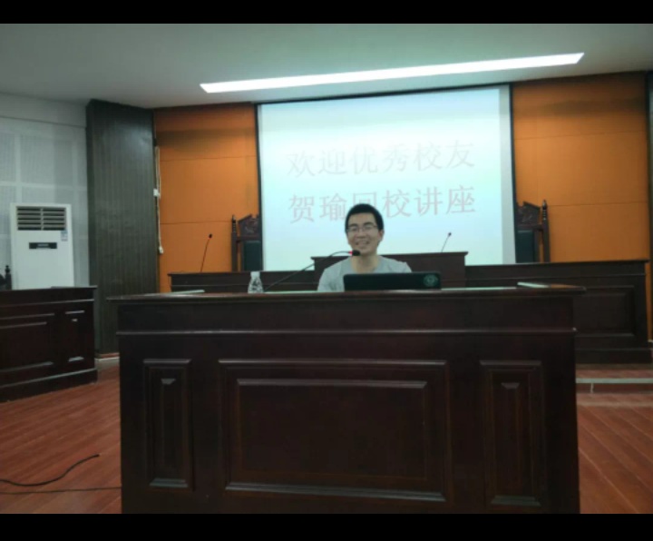 2018年4月22日晚自习,法学院优秀校友贺瑜于致远楼202开展演讲。