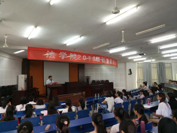 9月13日上午,法学院2016新生见面会在致远楼202顺利举行,大会由法学院党总支副书记刘依归老师主持,党总支书记谢光绎研究员、院长朱耀斌博士、副院长王秋香教授、辅导员郭璐老师及法学院2016级全体新生参加了此次新生见面会。
