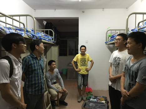走访的过程中,谢书记与谢老师实地察看了新生的宿舍条件并深入了解宿舍具体情况,亲切的询问了新生宿舍硬件设施是否完好,是否还有急需处理的问题。当谢书记听到同学反应宿舍浴室热水器存在问题时,他当即打电话给后勤公司,几个电话后,维修员工表示将尽快解决问题后,谢书记这才放心离开,前往下一间寝室继续了解情况。