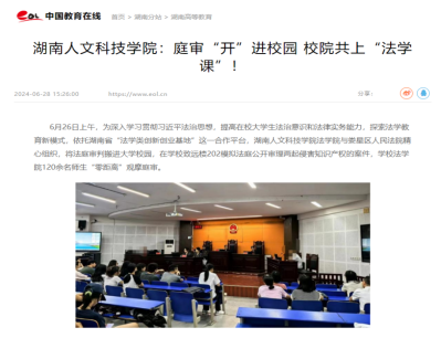 2024年6月娄星区法院真实法庭“开”进校园 校院共上法学课