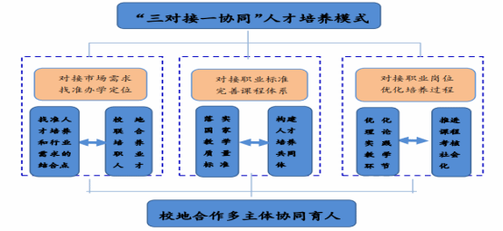 法学院聚焦应用型人才培养目标的办学定位,不断提高专业建设与社会需求的契合度,对人才培养方案的课程体系标准化、理论教学模块化、实践教学同步化、师资队伍多元化等方面作了有益探索,不断推进理论与实践、知识与能力、校内与校外、专业和职业的深度融合,构建了“对接市场需求、找准办学定位;对接职业标准,完善课程体系;对接职业岗位,优化培养过程”和校地多主体协同育人“三对接一协同”的 人才培养模式,显著提高了应用型人才培养质量(如图示),取得了较好的社会反响。