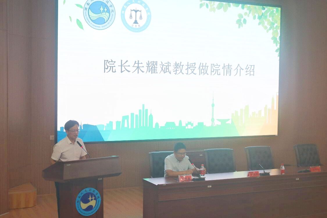 朱耀斌就法学院的基本情况、历史发展、荣誉与成就等向同学们做了介绍,他鼓励同学们应积极面向未来,保持身心健康,妥善化解压力,培养自我驱动的学习能力,做能堪当民族复兴大任的时代新人。