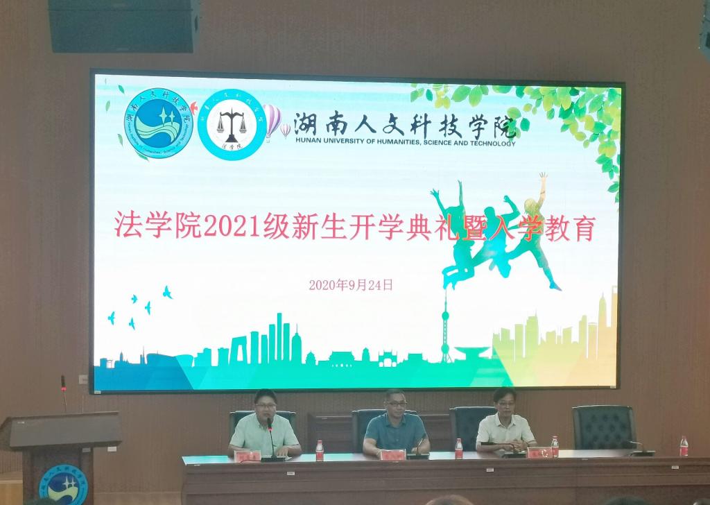 9月24日晚,法学院于匠成楼报告厅举行21级新生开学典礼暨入学教育讲座,法学院党总支书记肖兵明、院长朱耀斌、党总支副书记刘景春、优秀校友林宁、全体辅导员、21级班主任及新生参加典礼。此次活动由党总支副书记刘景春主持。