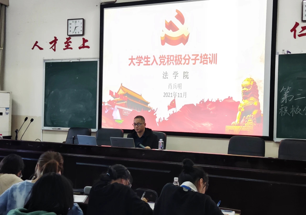 在培训内容方面,主要围绕“习近平新时代中国特色社会主义思想”“党的指导思想、性质、宗旨、路线和纲领”“党章党规党纪”“党员的权利和义务”“端正入党动机”及“理想信念教育”等进行了精心安排。在培训形式方面,既有教师集中授课,也有学员自学。在授课教师安排上,党总支邀请了文学院党总支书记和外国语学院党总支书记、副书记授课外,院党支书记肖兵明,院长兼党总支副书记朱耀斌,副书记刘景春也都参与了授课。